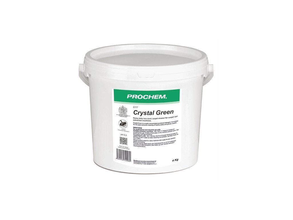 Crystal Green je navrhnutý na profesionálne a priemyselné použitie v horúcovodných extraktory. Vďaka svojmu zloženiu sa ľahko rozpúšťa vo vode a umožňuje rýchlu prípravu roztoku. Tento zelený prášok s bylinkovo-citrónovou vôňou efektívne odstraňuje nečistoty a zanecháva minimálne zvyšky, čím zaručuje dlhodobý čistý vzhľad kobercov.