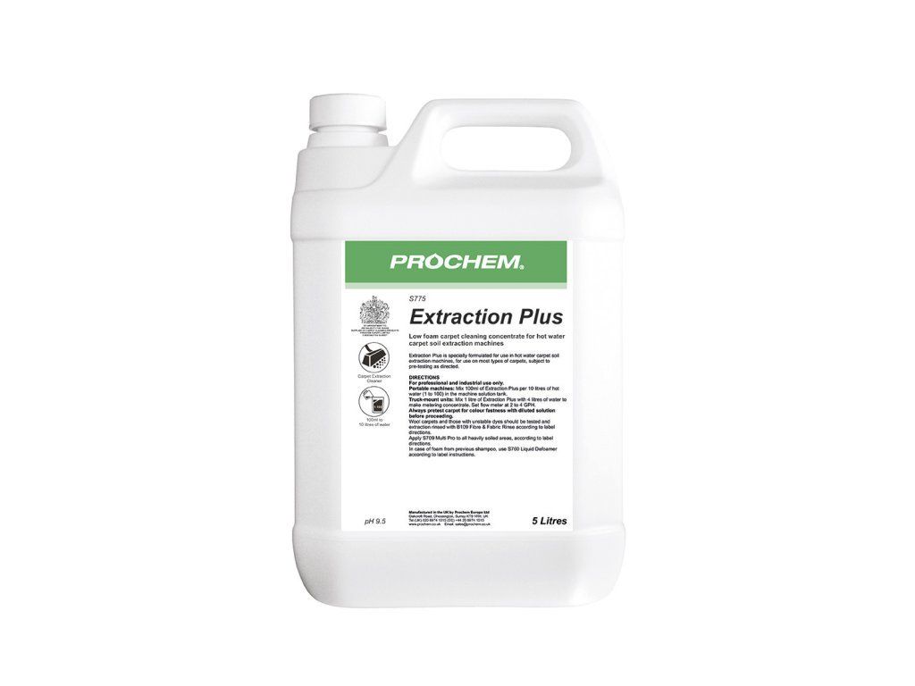 Extraction Plus je navrhnutý na profesionálne použitie s horúcovodnými extrakčnými strojmi v komerčnom prostredí. Tento fluorescenčne zelený roztok s citrusovou vôňou je ideálny na odstránenie zažraných nečistôt a mastných zvyškov z kobercov. Vďaka svojmu zloženiu odoláva vysokým teplotám a umožňuje voľné oplachovanie bez zanechania lepivých zvyškov.