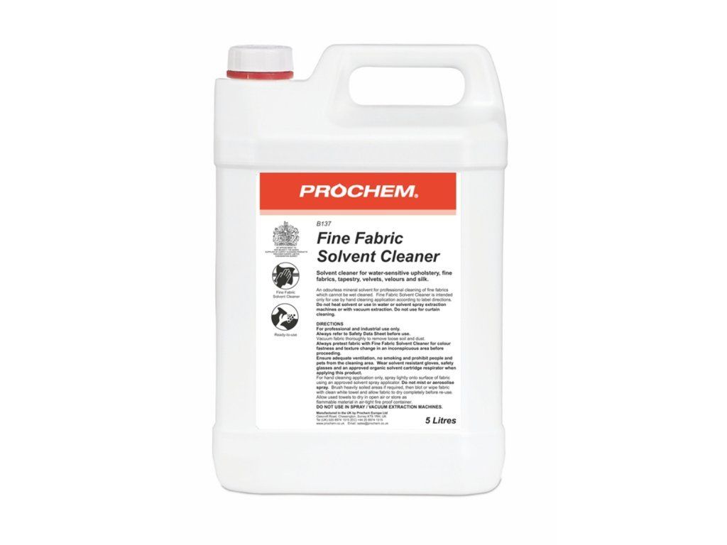 Fine Fabric Solvent Cleaner je určený na bezpečné čistenie textílií, ktoré nemožno čistiť mokrou cestou. Je pripravený na okamžité použitie, bez potreby oplachovania. Vďaka nízkej aróme je vhodný aj do citlivého prostredia. Možno ho kombinovať s PROCHEM Solvent Cleaner Additive pre vyšší výkon.